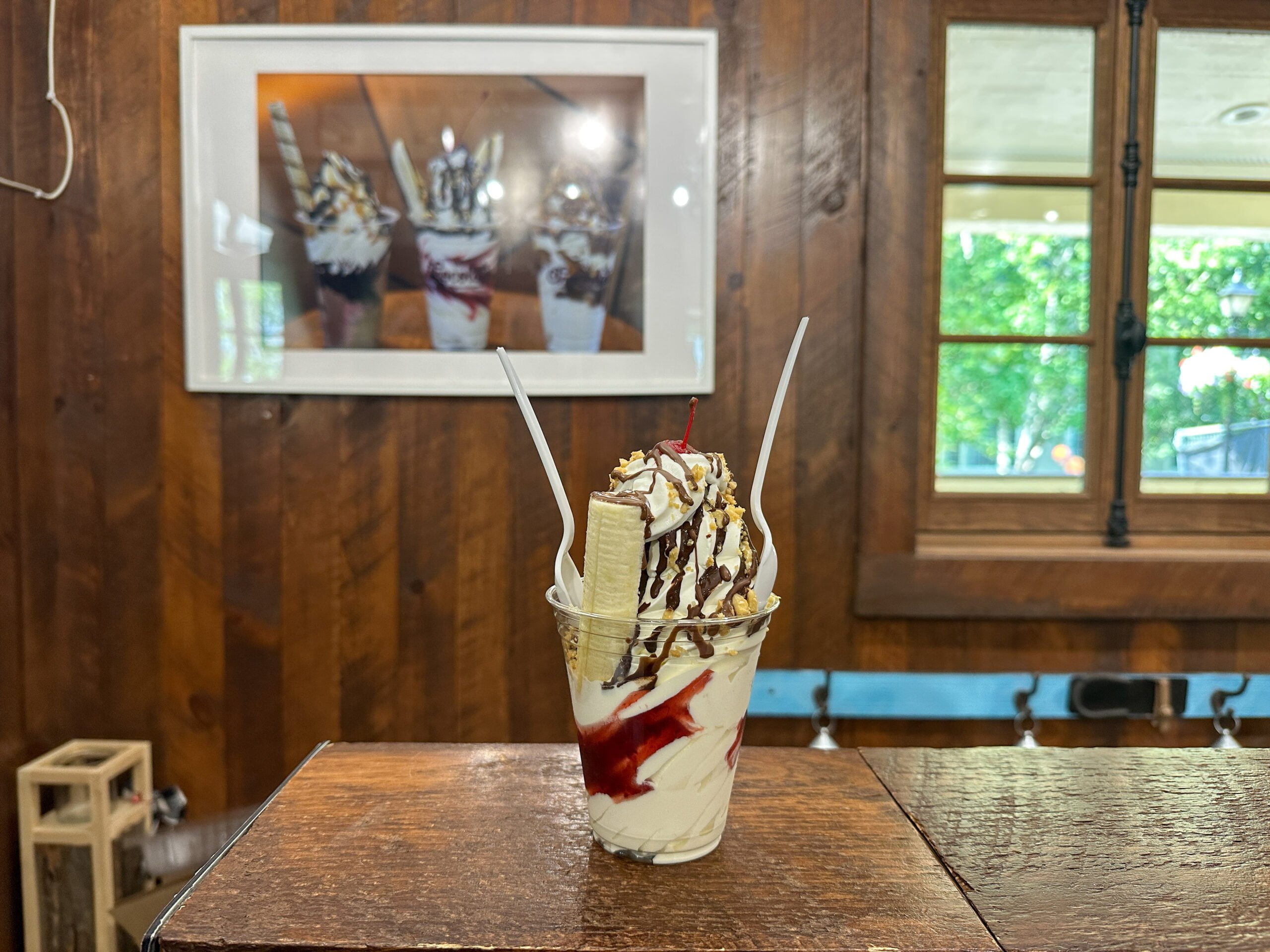 À l’entrée du village piétonnier, la Cabane à sucre de la montagne est bien connue pour sa fameuse tire d’érable. Mais, elle offre également de la crème glacée molle au beurre d’érable, sur laquelle ils ajoutent un coulis de tire. Un vrai délice canadien!