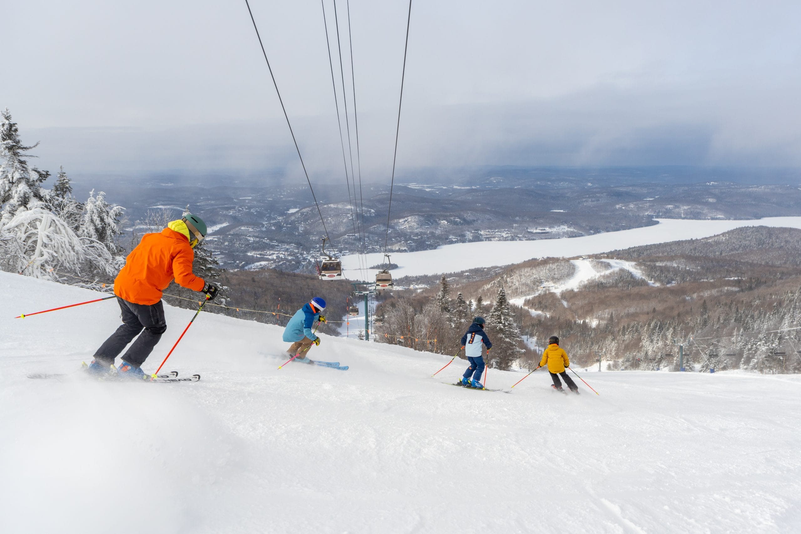 La fameuse vue carte postale du village piétonnier et du lac Tremblant depuis le versant Sud! Toute personne ayant skié à Tremblant doit avoir pris cette photo au moins une fois lors de leur visite. Mais c’est une vue dont on ne se lassera jamais.