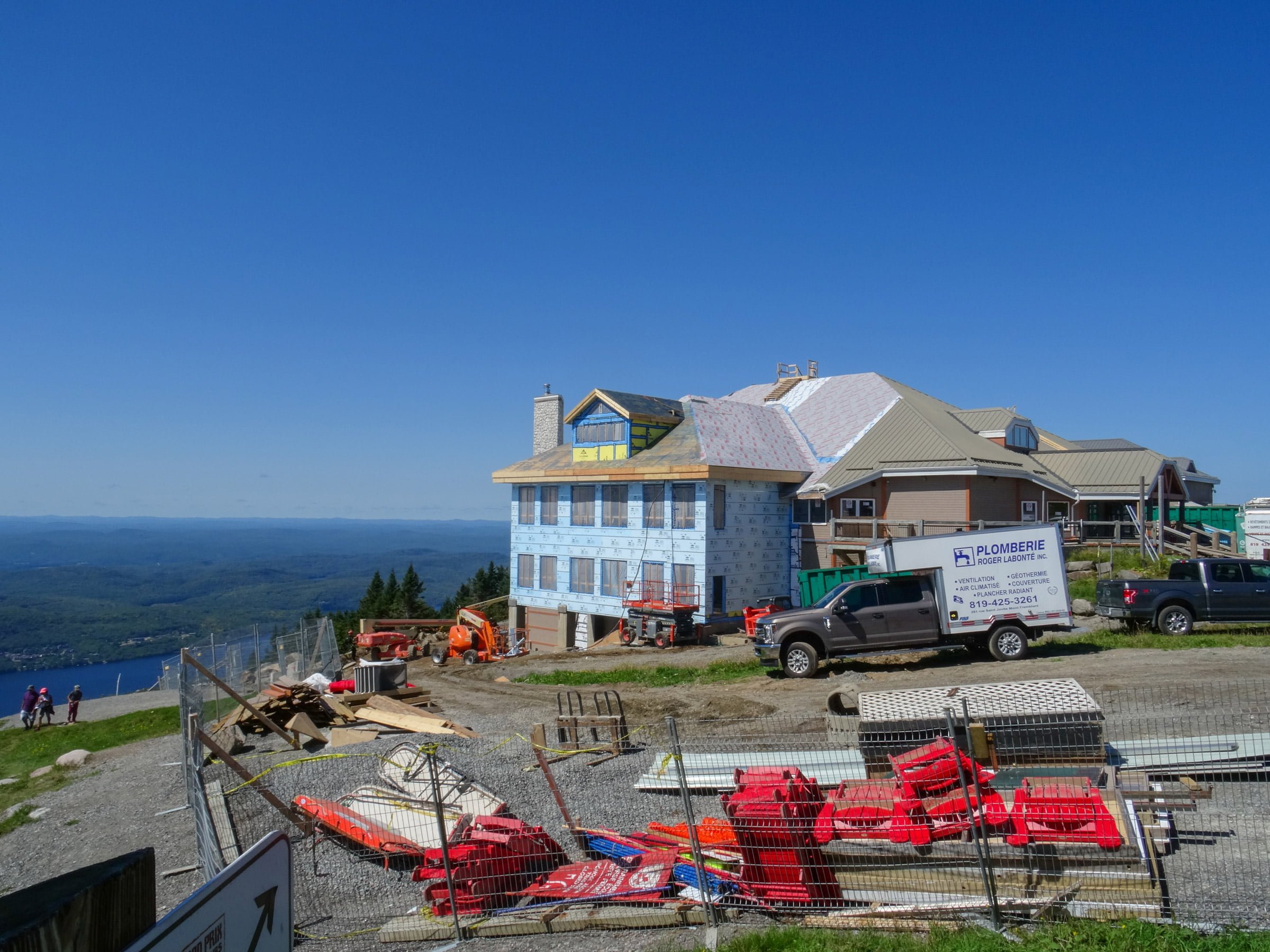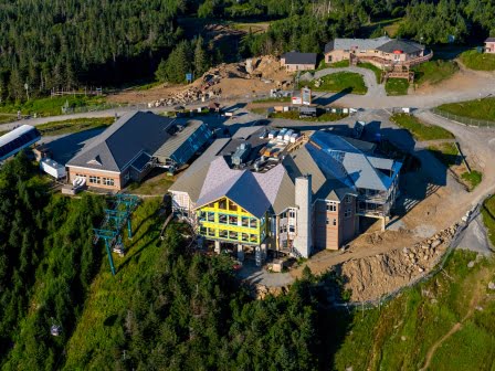 Grâce à la collaboration de mère nature, les travaux vont bon train sur les améliorations qui ont été annoncées au printemps. Les structures d’acier qui accepteront l’agrandissement du chalet Grand Manitou sont en place et d’ici la fin août les murs seront fermés et la toiture ainsi que les fenêtres seront installés.