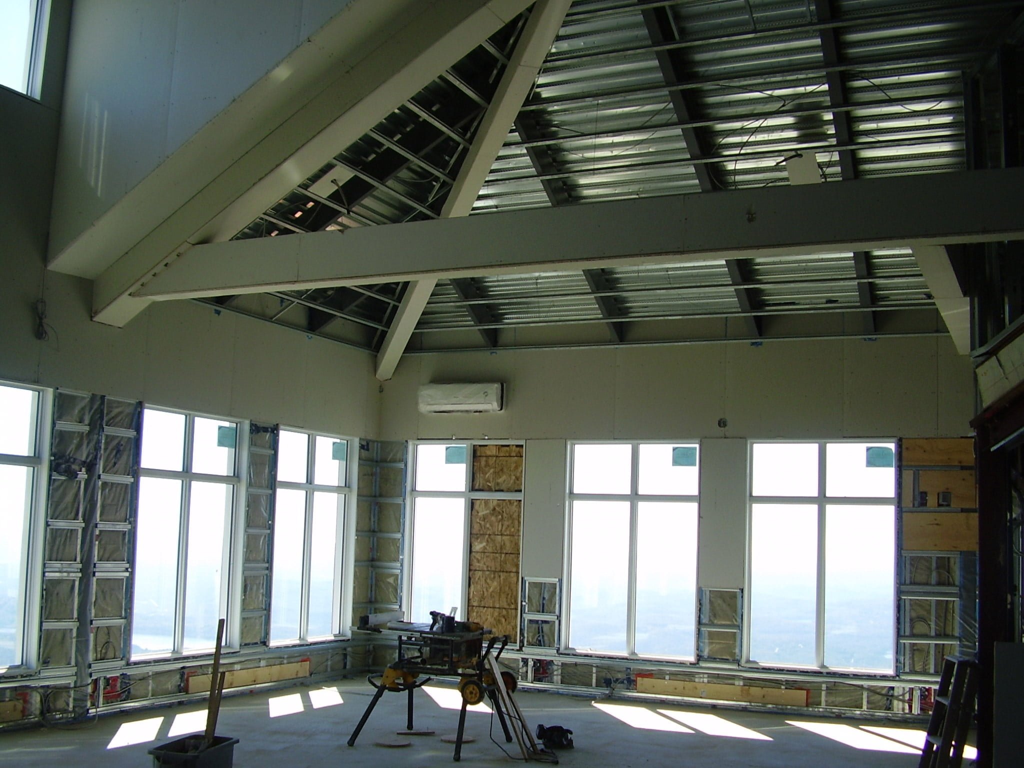 À la suite de la démolition et de l’excavation, nous avons mis en place les cages d’armatures dans les coffrages des pilastres pour procéder à la coulée du béton. Le jeudi 5 juin, nous avons terminé le bétonnage des pilastres de l’extension du côté sud du bâtiment. En même temps, la structure d’acier de l’extension du côté ouest du bâtiment a été installée. Le beau temps nous a permis de poser les planchers des 1er et 2e étages et d’ériger la structure du toit du côté ouest du bâtiment.