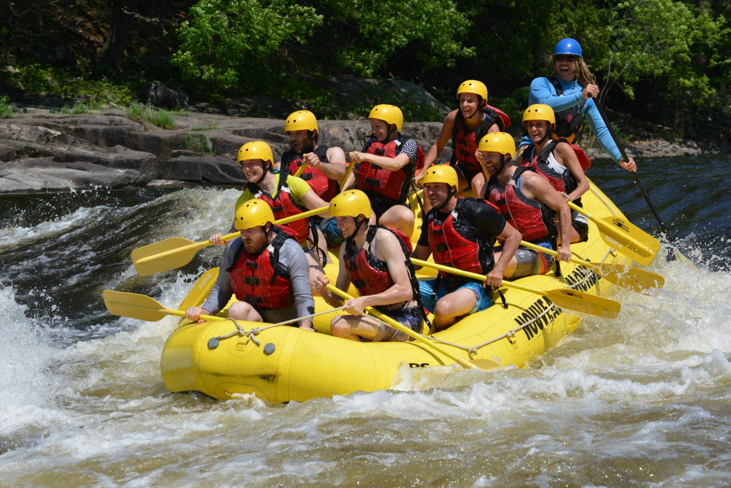 Dès le printemps et tout au long de l’été, les rivières des Laurentides se transforment en véritables pistes de toboggan naturelles, sculptées par le relief et le débit saisonnier. Autrefois voies de passage et routes de transport essentielles, elles deviennent aujourd’hui un terrain de jeu idéal pour s’initier au rafting, sentir la force du courant et se laisser emporter par l’énergie vivante de l’eau.