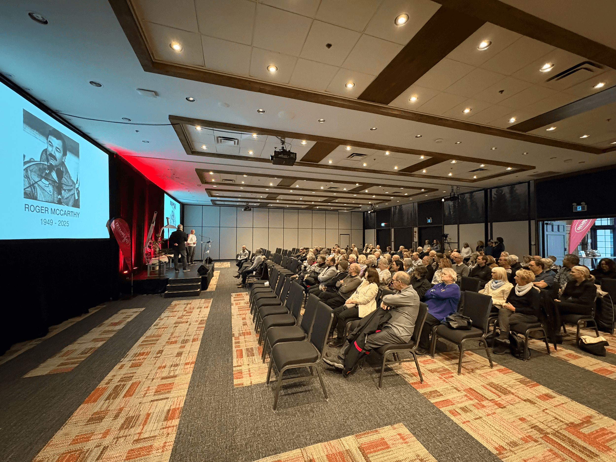 The ceremony concluded with a heartfelt tribute from Hugh Smythe of Whistler, a member of the Canadian Ski Hall of Fame, who worked closely with Roger during key moments of his career. This was followed by the powerful video presentation THE ROGER MCCARTHY STORY (in English only), shown during the ceremony.
